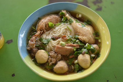 Best roadside noodle stall - Chicken drumstick. duck drunmstick, prok ribs and meatballs - 150 Bahts |
